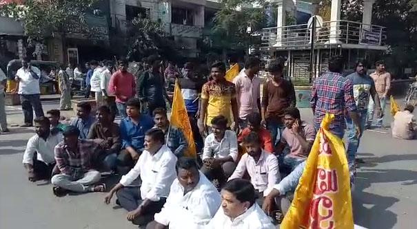 జేసీ బ్రదర్స్ దౌర్జన్యాలపై తాడిపత్రి నియోజకవర్గంలోని ఓవర్గం టీడీపీ నేతలు బుధవారం రోడ్డెక్కారు. టీడీపీ కార్యకర్త శేఖర్కు చెందిన అన్నాట్రాన్స్ పోర్టులో జేసీ వర్గీయులు విధ్వంసానికి పాల్పడ్డారు. ఒక కారు, లారీ అద్దాలు, ఫర్నిచర్ ధ్వంసం చేశారు. జేసీ ప్రభాకర్ రెడ్డి ఆగడాలకు నిరసనగా పోలీసు స్టేషన్ వద్ద టీడీపీ కార్యకర్తలతో కలిసి నేతలు జయచంద్రారెడ్డి, కాకర్ల రంగనాథ్ బైఠాయించారు. వెంటనే జేసీ సోదరులపై చర్యలు తీసుకోవాలని డిమాండ్ చేశారు.