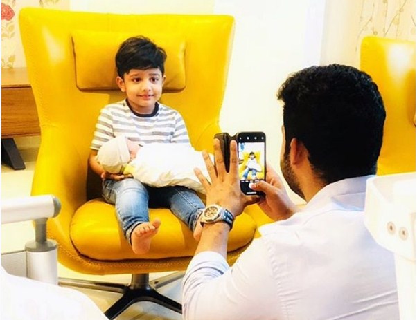 గత వారంలో జన్మించిన తన రెండో కుమారుడిని ఎన్టీఆర్ తొలిసారిగా అభిమానులకు పరిచయం చేశాడు. సోషల్ మీడియా ఫొటో షేరింగ్ ప్లాట్ ఫామ్ ఇన్ స్టాగ్రామ్ లో ఇటీవల ఖాతా తెరిచిన ఎన్టీఆర్, దానిలో తొలి పోస్టుగా ఉంచిన ఈ ఫొటో ఇప్పుడు వైరల్ అవుతోంది. పెద్ద కుమారుడు అభయ్ రామ్ తన చేతుల్లో తమ్ముడిని ఎత్తుకుని ఓ కుర్చీలో కూర్చుని ఉండగా, ఎన్టీఆర్ తన స్మార్ట్ ఫోన్ లో దాన్ని చిత్రీకరిస్తున్నట్టు ఉన్న ఫోటో షేర్ చేశాడు. ఈ ఫోటోకి మంచి సోషల్ మీడియాలో మంచి రెస్పాన్స్ వస్తుంది.