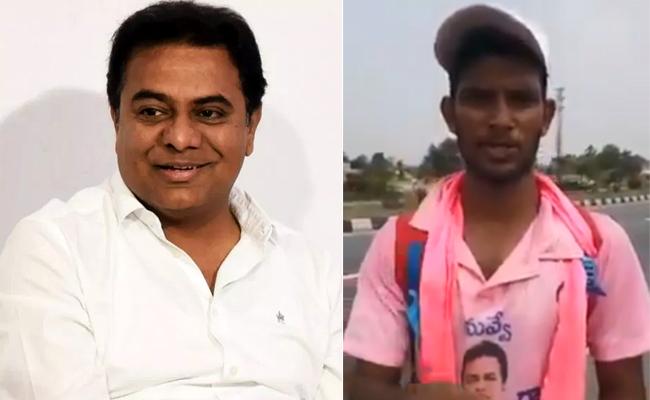 టీఆర్ఎస్ పార్టీకి తెలంగాణలోనే కాకుండా ఆంధ్రప్రదేశ్లోనూ అభిమానులు ఉన్నారనే సంగతి తెలిసిందే. తెలంగాణలో మరోసారి టీఆర్ఎస్ పార్టీయే అధికారం చేపట్టాలని, కేసీఆరే ముఖ్యమంత్రి కావాలని తాజాగా కేసీఆర్పై అభిమానంతో ఓ యువకుడు విజయవాడ నుంచి హైదరాబాద్కు పాదయాత్ర చేపట్టాడు. నెలూరు జిల్లాకు చెందిన రోహిత్ కుమార్ రెడ్డి కేటీఆర్ వీరాభిమాని. తన గుండెపై కేటీఆర్ రూపాన్ని టాటూగా వేయించుకున్నాడు. గులాబీ దుస్తుల్లో విజయవాడ నుంచి కాలినడకన హైదరాబాద్కు బయలుదేరాడు. అయితే ఆ యువకుడు చేసిన పనికి మంత్రి కేటీఆర్ ఫిదా అయ్యారు. ట్వీటర్ వేదికగా అతనికి ధన్యవాదాలు తెలిపారు. ‘రోహిత్ రెడ్డి నీ ప్రేమకు, అభిమానానికి ధన్యవాదాలు. ఏపీకి చెందిన రోహిత్.. కేసీఆర్, టీఆర్ఎస్కు మద్దతుగా విజయవాడ నుంచి పాదయాత్ర చేస్తున్నారు’ అని ట్వీట్ చేశారు.
