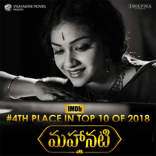 సినీమాలకు సంబంధించిన, టెలివిజన్ కార్యక్రమాలు మరియు వీడియోగేమ్స్ తదితర వర్గలకు సంబంధమైన ఆన్ లైన్ డాటాబేస్ సంస్థ తాజాగా 2018కి లో ఇండియాలో టాప్ టెన్ (10అగ్రస్థానాల సినిమాల జాబితాను విడుదల చేసింది. కాగా మన టాలీవుడ్ నుండి మహానటి సినిమా (4) నాల్లవ స్థానంలో ఇక రంగస్థలం (7) స్థానంలో చోటుదక్కించుకున్నాయి. మహానటి సిమాలో అభినవ నేత్రి సావిత్రి జీవితకథ నేపథ్యంలో తెరకెక్కింది. ఈ చిత్రంలో కీర్తీ సురేష్ రెడ్డి కథనాయికగా ప్రథాన పాత్ర పోషించారు. సమంత, దుల్కర్ సల్మాన్, విజయ్ దేవరకొండ కీలకపాత్రలో నటించారు. సుకుమార్ దర్శకత్వంలో తెరకెక్కిన రంగస్థలం చిత్రం భారీ విజయం సాధించిందో ప్రత్యేకంగా చెప్పనవసరంలేదనుకో బాహుబలి తరువాత భారీ వసూళ్లను సాధించిన రెండవ చిత్రంగా రికార్డు సృష్టించింది.