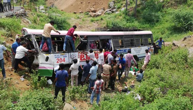 కొండగట్టు ఘాట్ రోడ్డులో ఘోర ప్రమాదం చోటుచేసుకుంది. ప్రయాణికులతో వెళ్తున్న ఆర్టీసీ బస్సు బోల్తా పడింది. ఈ ప్రమాదంలో 32 మంది మృతి చెందగా.. మరో 20 మందికి పైగా తీవ్రంగా గాయపడ్డారు. మృతుల సంఖ్య పెరిగే అవకాశం ఉంది. ఘటనాస్థలంలోనే అత్యవసర చికిత్స అందించేందుకు వైద్య సిబ్బంది చేరుకున్నారు. క్షతగాత్రులను జగిత్యాల ఆస్పత్రికి తరలిస్తున్నారు. స్థానికులు, అధికారులు, పోలీసు సిబ్బంది సహాయక చర్యలు చేపట్టారు. బస్సులో చిక్కుకున్న వారిని వెలికితీస్తున్నారు. ప్రమాదంపై సీఎం కేసీఆర్ తీవ్ర విచారం వ్యక్తం చేశారు. ప్రమాదంలో ప్రాణనష్టంపై సీఎం ఆవేదన వ్యక్తం చేశారు. క్షతగాత్రులకు మెరుగైన వైద్యం అందించాలని సీఎం అధికారులను ఆదేశించారు. మరోవైపు బస్సు ప్రయాణిస్తున్న మార్గంపై అనుమానాలు వ్యక్తమవుతున్నాయి. ఈ బస్సు దారి తప్పి ఘాట్ మార్గంలోకి వచ్చిందని.. అసలు ఈ మార్గంలో ఆర్టీసీ బస్సులు ప్రయాణించే అవకాశమే లేదని స్థానికులు చెబుతున్నారు. ఆర్థిక మంత్రి ఈటల రాజేందర్ సైతం ఇదే రీతిలో స్పందించారు. ఈ మార్గం ఆర్టీసీ బస్సుల ప్రయాణానికి అనువుగా ఉండదని.. అందువల్ల ఆర్టీసీ బస్సులు ఈ మార్గంలోకి రావని ఆయన తెలిపారు. అయితే ఈ బస్సు మాత్రం ఎలా వచ్చిందన్న కారణాలపై విచారణ జరిపిస్తామని పేర్కొన్నారు.