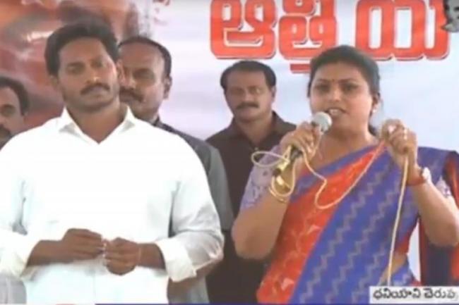 వైఎస్సార్ కాంగ్రెస్ పార్టీ అధినేత జగన్మోహన్ రెడ్డి చేస్తోన్న పాదయాత్ర కొనసాగుతోంది. నిన్న అనంతపురం జిల్లా ధనియాని చెరువు వద్ద జగన్ మహిళల కష్టాలను అడిగి తెలుసుకున్నారు. ఈ సందర్భంగా ఏర్పాటు చేసిన బహిరంగ సభలో ఎమ్మెల్యే రోజా మాట్లాడుతూ చంద్రబాబు నాయుడు ఇచ్చిన హామీల్లో ఒక్క హామీ అయినా నెరవేర్చారా? అని ప్రశ్నించారు. కేజీ నుంచి పీజీ వరకు ఉచిత విద్య, విద్యార్థులకు సైకిల్ అంటూ ఎన్నో హామీలు ఇచ్చారని అన్నారు. ఒక్క హామీ కూడా నెరవేర్చలేదని చెప్పారు. 'పిడికిలి బిగించి మహిళలంతా ఒక శపథం చేయాలి.. మహిళల పంతం.. చంద్రబాబు పాలన అంతం అంటూ పోరాడాలి' అని రోజా పిలుపునిచ్చారు.
