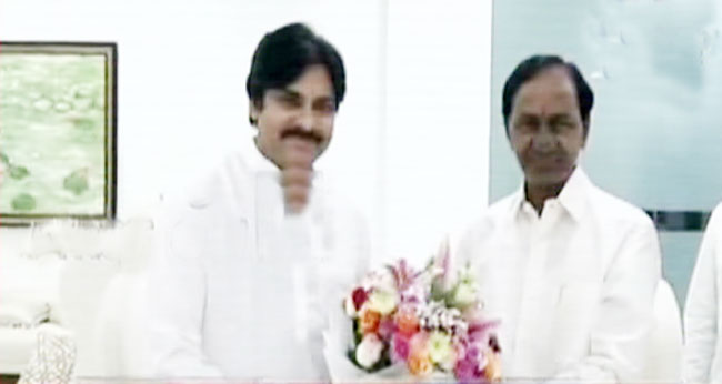 ప్రముఖ నటుడు, జనసేన అధినేత పవన్కల్యాణ్ తొలిసారి ప్రగతి భవన్కు వెళ్లారు. ఈ సందర్భంగా సీఎం కేసీఆర్కు పవన్ నూతన సంవత్సర శుభాకాంక్షలు తెలిపారు. అనంతరం అరగంటపాటు వీరిమధ్య చర్చ జరిగింది. తెలంగాణ రాజకీయాల్లో సీనియర్గా ఉన్న కేసీఆర్ దగ్గర సలహాలను పవన్ తీసుకున్నట్లు తెలుస్తోంది. అదే విధంగా తెలంగాణ ఉద్యమానికి ముందు, రాష్ట్ర అవతరణ అనంతరం జరిగిన పరిణామాలపై ఇరువురి మధ్య ఆసక్తికర చర్చ జరిగినట్లు సమాచారం. 2019 నుంచి తెలుగు రాష్ట్రాల్లో క్రియాశీలకంగా రాజకీయాల్లోకి రానున్న పవన్ తాజాగా కేసీఆర్తో భేటీ కావడంతో ఆసక్తికరంగా మారింది. అయితే వీరి మధ్య ఇవే కాకుండా మరిన్ని అంశాలపై కూడా చర్చ జరిగినట్లుగా విశ్వసనీయ వర్గాల సమాచారం. మొత్తానికి చూస్తే వీరిద్దరి మధ్య రాజకీయ అంశాలపైనే చర్చ జరిగిందని తెలుస్తోంది.