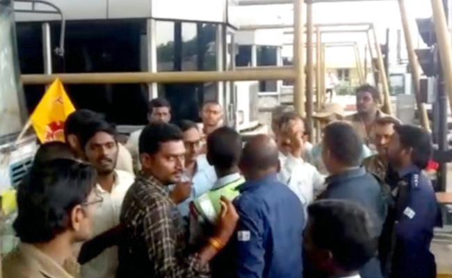 కృష్ణాజిల్లాలో తెలుగు తమ్ముళ్లు రెచ్చిపోయారు. కంచికచర్ల మండలం కీసర టోల్ప్లాజా సిబ్బందిపై మూకుమ్మడిగా దాడికి దిగారు. పోలవరం యాత్రకు వెళ్తోన్న టీడీపీ బస్సులను టోల్ప్లాజా సిబ్బంది ఆపడంతో రెచ్చిపోయిన తెలుగు తమ్ముళ్లు.... బూతులు తిడుతూ వీరంగమాడారు. అధికార పార్టీ బస్సులనే ఆపుతారా అంటూ టోల్ప్లాజా సిబ్బందిపై దాడి చేశారు.