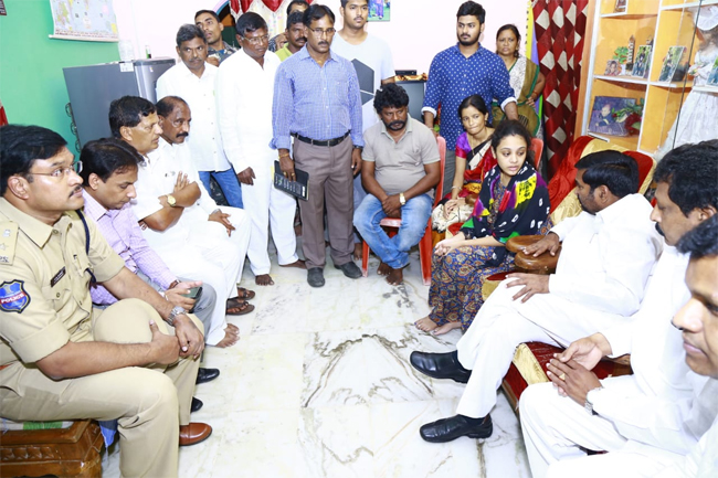 మిర్యాలగూడలో కిరాయి హంతకుల చేతిలో హత్యకు గురైన ప్రణయ్ కుటుంబ సభ్యులను, ప్రణయ్ భార్య అమృత వర్షిణిని మంత్రి జగదీశ్రెడ్డి పరామర్శించారు. ఇలాంటి సంఘటనలు జరగడం దురదృష్టకరమని చెప్పారు. మారుతీరావు లాంటి వ్యక్తులకు సంఘ బహిష్కణ చేయాలని డిమాండ్ చేశారు. ప్రభుత్వం నుంచి వచ్చే రాయితీలను కుటుంబ సభ్యులకు అందజేస్తామని ప్రకటించారు. మృతుని కుటుంబానికి ప్రభుత్వం తరపున 8 లక్షల 25వేల రూపాయలు, డబుల్ బెడ్రూం ఇల్లు, వ్యవసాయ భూమి ఇవ్వాలని జిల్లా కలెక్టర్కు ఆదేశించడం జరిగిందన్నారు. గంటల వ్యవధిలోనే పోలీసు యంత్రాంగం వేగంగా స్పందించి హంతకులను పట్టుకోవడం జరిగిందన్నారు. ప్రభుత్వం ఇటువంటి సంఘటనలు సహించదని తెలిపారు.
