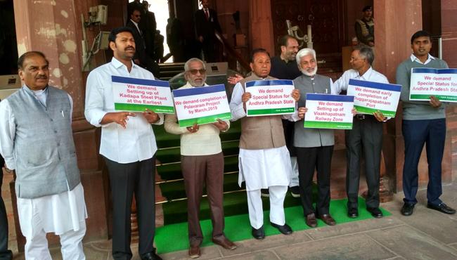 విభజన హామీల అమలయ్యే వరకు తమ పోరాటం కొనసాగుతుందని వైసీపీ ఎంపీలు స్పష్టం చేశారు. టీడీపీ స్వార్థ రాజకీయాల కోసం డ్రామాలు ఆడుతోందన్నారు. చంద్రబాబు నాయుడు డబుల్ గేమ్ ఆడుతున్నారని, మంత్రివర్గంలో ఉంటూ నిరసనలు చేయడం ప్రజలను మభ్యపెట్టడమే అని మండిపడ్డారు. బడ్జెట్ సమావేశాలు ముగిసే వరకూ నిరసన కొనసాగిస్తామని అన్నారు. రాష్ట్ర విభజన హామీల అమలు చేయాలని కోరుతూ మూడో రోజు కూడా వైఎస్ఆర్ సీపీ ఎంపీలు పార్లమెంట్ ప్రధాన ద్వారం దగ్గర ధర్నాకు దిగారు. ఏపీకి ప్రత్యేక హోదాతో, రాష్ట్రానికి న్యాయం చేయలంటూ ఎంపీలు ఫ్లకార్డులు ప్రదర్శిస్తూ, పెద్ద ఎత్తున నినాదాలు చేశారు.