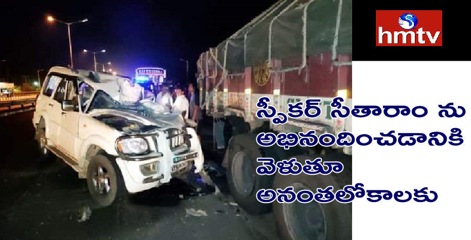 అసెంబ్లీ స్పీకర్గా ఎన్నికవుతున్న తమ్మినేని సీతారాంకు అభినందనలు తెలిపేందుకు శ్రీకాకుళం జిల్లా నుంచి రెండు బస్సులు, ఆరు కార్లలో వైసీపీ నేతలు, అభిమానులు బుధవారం అర్ధరాత్రి అమరావతికి బయలుదేరారు. ఈ తెల్లవారుజామున తుని పోలీస్ స్టేషన్ సమీపంలోకి రాగానే వైసీపీ నేతలు ప్రయాణిస్తున్న స్కార్పియో వాహనం రోడ్డు పక్కన ఆగివున్న లారీని ఢీకొట్టింది. శ్రీకాకుళం జిల్లా పొందూరు మండలం ధర్మాపురానికి చెందిన పప్పల నారాయణమూర్తి(69), గోరింట గ్రామానికి చెందిన మాజీ జడ్పీటీసీ బీఎల్ నాయుడు(55) అక్కడికక్కడే మృతి చెందారు. డ్రైవర్కు తీవ్ర గాయాలయ్యాయి. డ్రైవర్ను తుని ఆసుపత్రికి తరలించి చికిత్స అందిస్తున్నారు. ఈ దుర్ఘటనపై సీఎం వైఎస్ జగన్ దిగ్భ్రాంతి వ్యక్తం చేశారు. గాయపడిని వారిని వెంటనే మెరగైన చికిత్స అందించాలని అధికారులను ఆదేశించారు.