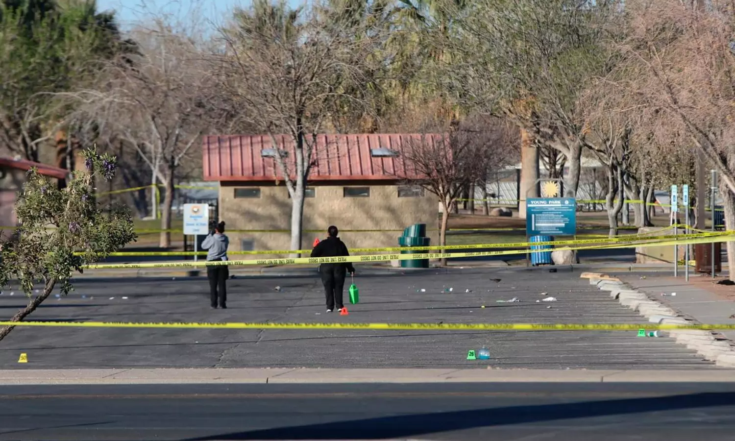 లాస్ క్రూసెస్ నగరం చివావా ఎడారి అంచున, రియో గ్రాండే నదికి సమీపంలో ఉంది. ఈ నగరం అమెరికా-మెక్సికో సరిహద్దుకు ఉత్తరాన 66 కిలోమీటర్ల దూరంలో ఉంది. 'న్యూయార్క్ టైమ్స్' ప్రకారం, సంఘటన జరిగిన సమయంలో, ఆ ప్రాంతంలో మోడిఫైడ్ స్పోర్ట్స్ కార్ ప్రియుల కోసం నెలవారీ సమావేశం జరిగేది. రెండు గ్రూపుల మధ్య జరిగిన గొడవ కారణంగా ఈ కాల్పులు జరిగాయని లాస్ క్రూసెస్ పోలీస్ చీఫ్ తెలిపారు. ఈ సంఘటన కార్ షోకు ముందు జరిగింది. సంఘటనా స్థలంలో దాదాపు 50-60 హ్యాండ్గన్ బుల్లెట్ షెల్స్ దొరికాయి. సంఘటన జరిగిన సమయంలో పార్కులో దాదాపు 200 మంది ఉన్నారు.