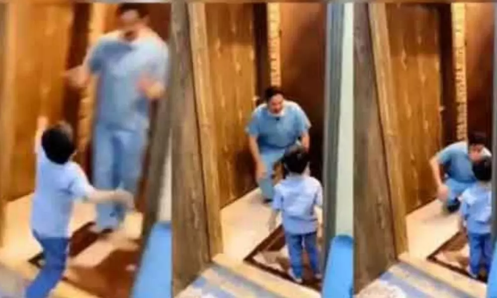 Coronavirus: కొడుకును దగ్గరకు తీసుకోలేక కన్నీళ్ళపర్యంతమైన వైద్యుడు .. వీడియో వైరల్