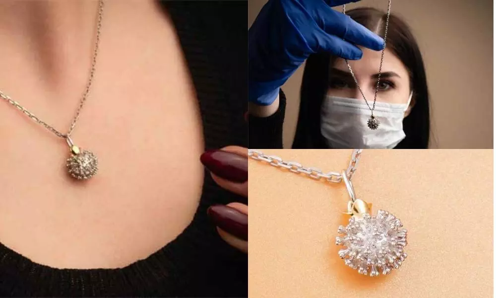 కరోనా వైరస్.. ప్రపంచవ్యాప్తంగా విలయ తాండవం చేస్తోంది. ఈ మహమ్మారి అందర్ని బాధితులుగా మార్చేస్తుంటే రష్యాలోని ఓ మెడికల్ నగల వ్యాపారి ఆ వైరస్ ఆకృతిని ఆభరణంగా మార్చేసింది. నేటి యువతరం అభిరుచికి అనుగుణంగా ఆమె రూపొందించిన ఈ వైరస్ పెండెంట్ కి ఆదరణ కూడా బాగుంది.
