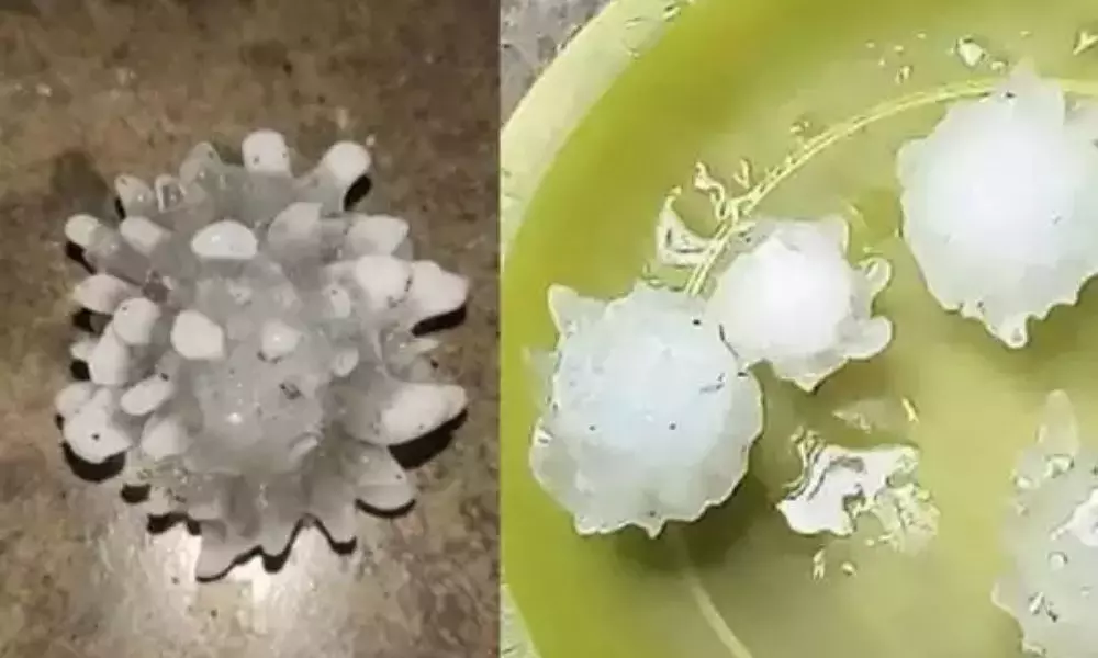 ఇంతకీ ఏం జరిగింది అంటే మెక్సికోలోని మోంటేమోరేలోస్ మున్సిపాలిటీలో భారీ వర్షం కురిసింది. వర్షంతోపాటు వడగళ్లు కూడా కురిశాయి. ఆ వడగాళ్లను చూసి అందరూ ఆశ్చర్యపోయారు. ఎందుకంటే అవి అచ్చం కరోనా వైరస్లాగానే ఉన్నాయి. దీంతో అంతా ఆ మంచు ముద్దలకు ఫొటోలు తీసి సోషల్ మీడియాలో పోస్టు చేయగా న్యూస్ వైరల్ గా మారింది. ప్రజలు ఇళ్లలోనే కుర్చోవాలని ఆ దేవుడు సందేశం పంపాడని అంటున్నారు. అయితే వాతావరణ అధికారులు మాత్రం ఇది సహజమేనని అంటున్నారు. బలమైన గాలులు, ఒత్తిడి వల్ల మంచు ముద్దలు ఒకదాన్ని ఒకటి ఢీకొని భిన్న ఆకారాల్లోకి మారి కిందపడతాయన్నారు. మెక్సికోలో పడిన వడగళ్లు కూడా అలాంటివేనని తెలిపారు. కానీ ప్రజలు మాత్రం ఇది భగవంతుని లీలే అని సోషల్ మీడియాలో ఫోటోలను వైరల్ చేస్తున్నారు.