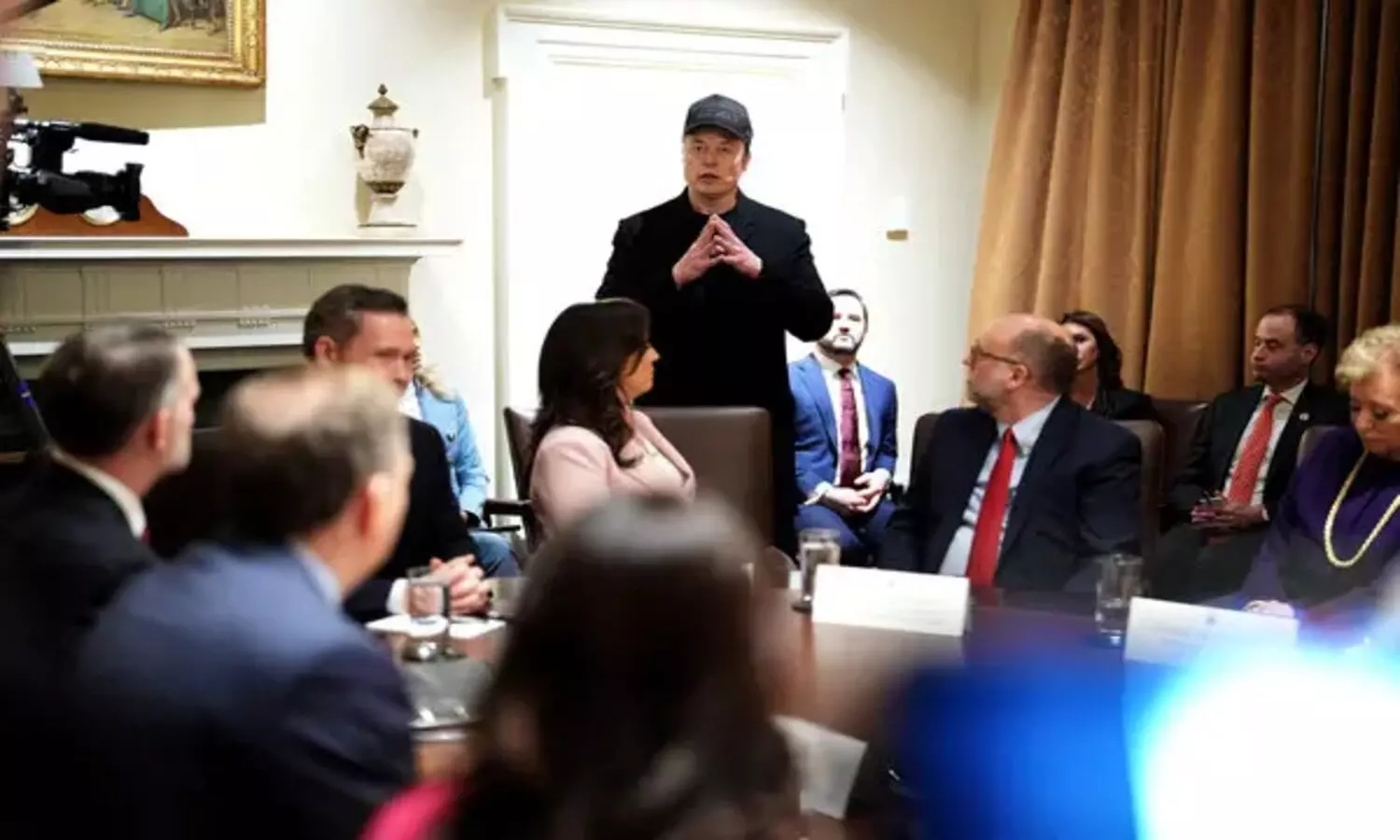 USA: డొనాల్డ్ ట్రంప్ రెండోసారి అమెరికా అధ్యక్ష బాధ్యతలు చేపట్టిన అనంతరం తొలిసారి కేబినెట్ భేటీ నిర్వహించారు. ఈ సమావేశానికి అపర కుబేరుడు, డోజ్ బాధ్యతలు చూస్తున్న ఎలాన్ మస్క్ కూడా హాజరయ్యారు. మస్క్ ఎలాంటి మంత్రిత్వ శాఖ లేదా నిర్ణయాలు తీసుకునే అధికారం లేకపోయినప్పటికీ ఈ సమావేశానికి హాజరయ్యారు. ప్రభుత్వ ప్రత్యేక ఉద్యోగి, అధ్యక్షుడికి సీనియర్ సలహాదారు హోదాలో ఈ భేటీలో పాల్గొన్నట్లు వైట్ హౌస్ ప్రెస్ సెక్రటరీ కరోలిన్ లీవిట్ పేర్కొన్నారు.