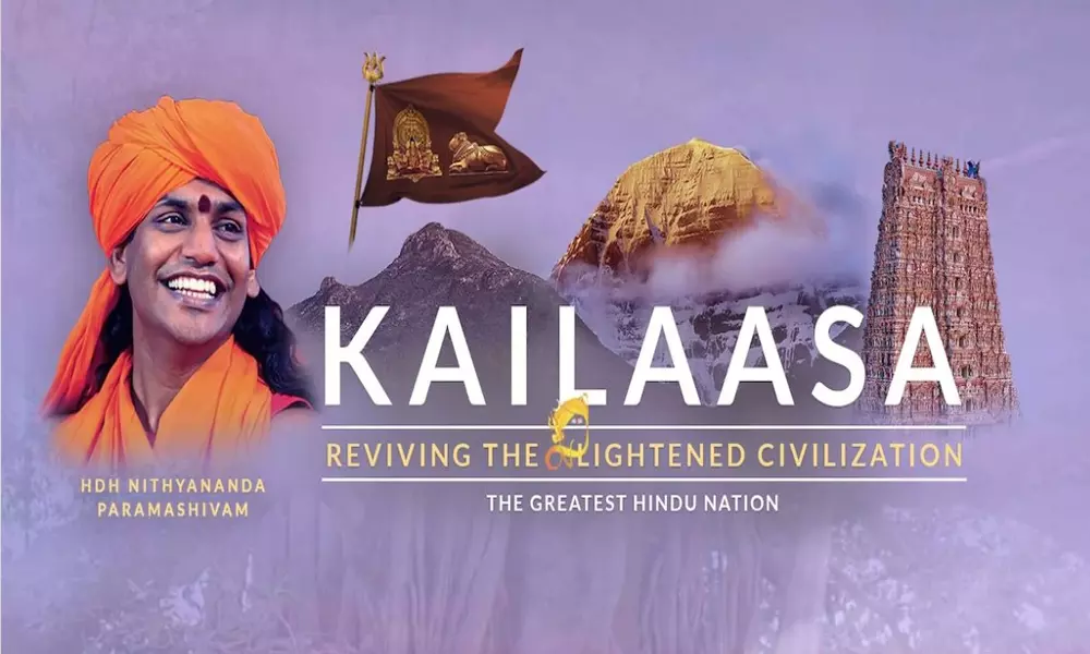 వెస్టీండీస్ దీవుల్లో ప్రత్యక్షమైన నిత్యానంద ఈక్వెడార్ నుండి ఒక చిన్న ద్వీపాన్ని కొనుగోలు చేసి దానికి కైలాస అనే పేరు పెట్టారు. తన ద్వీప దేశానికి ఒక పాస్ పోర్టు రూపొందించాడు. మెరూన్ కలర్ బ్యాక్ గ్రౌండ్ లో ఓ సింహాసనం ముందు నిత్యానంద కూర్చొని పక్క నంది చిత్రంతో జెండా. జాతీయ చిహ్నాన్ని డిజైన్ చేసుకున్నారు. అంతేకాదు కైలాస దేశం కోసం kailaasa.org పేరుతో వెబ్సైట్ను కూడా ఆవిష్కరించారు నిత్యానంద. కైలాస ఈ భూమండలంపై ఉన్న గొప్ప హిందూ దేశమని నిత్యానంద వెల్లడించారు.