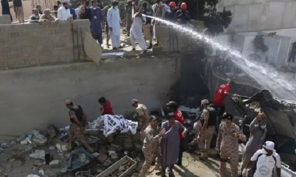 పాకిస్థాన్లోని కరాచీలో గురువారం ఘోర విమాన ప్రమాదం సంభవించింది.