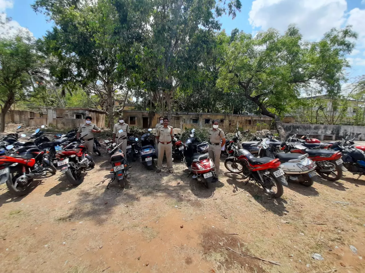తూర్పుగోదావరి జిల్లా : కొత్తపేటలో లాక్ డౌన్ సమయంలో ఉదయం 10 గంటలు దాటిన తరువాత నిభంధనలను అతిక్రమించి అనవసరంగా బయట బైక్ లపై తిరుగుతున్న సుమారు 50 పైగా మోటార్ సైకిళ్ళు ను కొత్తపేట ఎస్.ఐ కె.రమేష్ తన సిబ్బందితో కలిసి సీజ్ చేశారు. అనంతరం వాటిని స్థానిక పోలీస్ స్టేషన్ కు తరలించారు.ఈ సందర్భంగా ఎస్.ఐ మాట్లాడుతూ కొత్తపేట లో రెడ్ జోన్ ఉన్న కారణంగా మేము ఇచ్చిన టైం ప్రకారం ఉదయం 6 నుండి 10 గంటల లోపులో ఎవరికి వారు నిత్యావసర తదితర వస్తువులు కొనుగోలు చేసుకుని ఎవరి ఇళ్లకు వారు పెళ్ళిపోవాలని సూచించారు. ఉదయం 10 తరువాత అనవసరంగా బయట తిరిగితే వారి బైక్స్ ను సీజ్ చేయడంతో పాటుగా వారిని క్వారంటీన్ కు పంపిస్తామని హెచ్చరించారు.