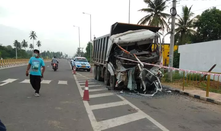 గన్నవరం వెటర్నరీ కళశాలశాల సమీపంలోని జాతీయ రహదారి పై రోడ్డు ప్రమాదం...