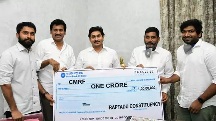 కోవిడ్ –19 నివారణలో భాగంగా సహాయ చర్యల కోసం ముఖ్యమంత్రి సహాయనిధికి రాప్తాడు ఎమ్మెల్యే తోపుదుర్తి ప్రకాష్ రెడ్డి, తోపుదుర్తి మహిళా సహకార డైరీ, నియోజకవర్గ పారిశ్రామిక వేత్తలు, నాయకులు రూ. 1,00,00,000/- విరాళం.