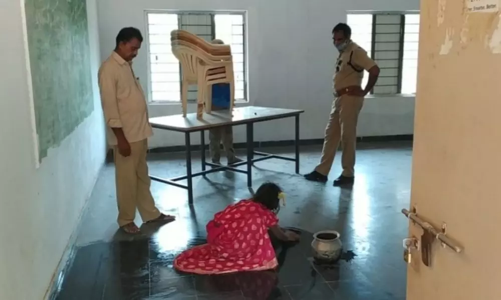 ఆత్మకూరు పట్టణంలోని ఇంటర్మీడియట్ స్పాట్ వాల్యుయేషన్ కు భద్రతకు కావలి నుండి వచ్చిన ఎస్కార్ట్ పోలీస్ సిబ్బంది తమకు కేటాయించిన గదిని ప్రభుత్వ జూనియర్ కళాశాల వాచ్ మెన్ కుమార్తె ఏడేళ్ల చిన్నారి బాలిక చే తడి గుడ్డతో రూమ్ అంతా క్లీన్ చేయించిన ఎస్కార్ట్ సిబ్బంది...