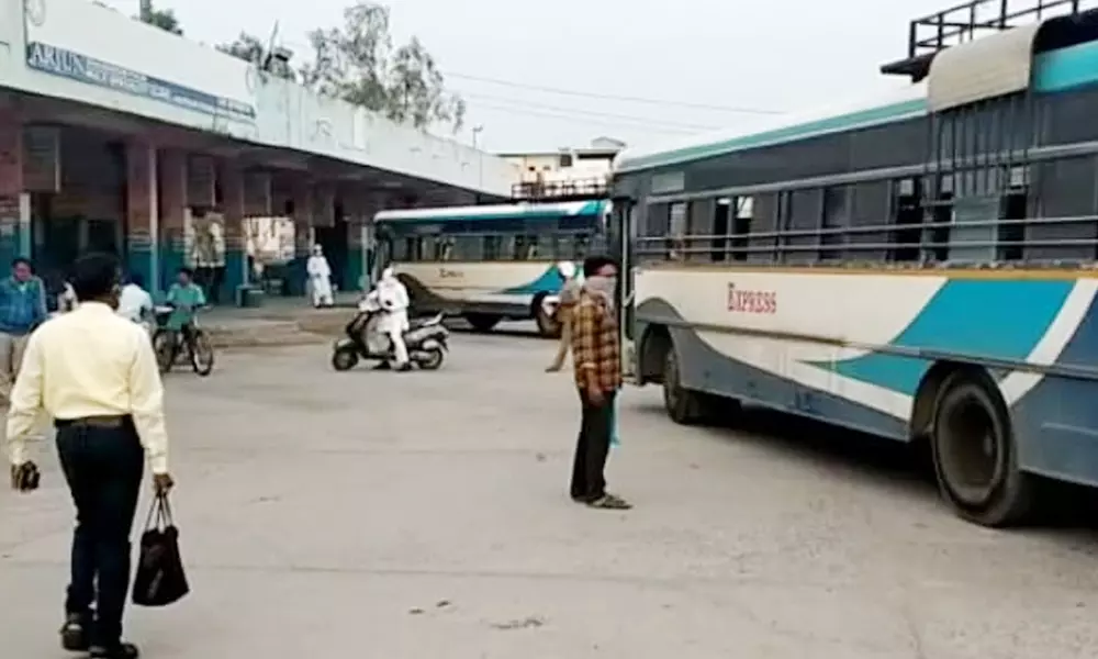 - ప్రయాణికులు కోసం వేచిచూస్తూ బస్టాండులోనే నిలిపిన సిబ్బంది.