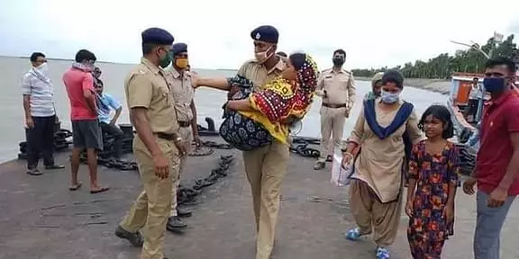 ఉంఫాన్ తుపాను ముప్పు ఉందని భావిస్తున్న పశ్చిమ బెంగాల్ లో ముందు జాగ్రత్త చర్యగా ప్రజలను సురక్షిత ప్రాంతాలకు తరలిస్తున్నారు. ఈ క్రమంలో ఓ పోలీసు అధికారి అనారోగ్యంతో ఉన్న ఒక మహిళను ఇలా మోసుకుని తరలిస్తున్నారు.