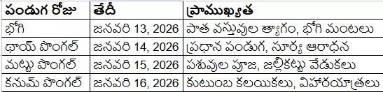 పొంగల్ 2026: ముఖ్యమైన తేదీలు