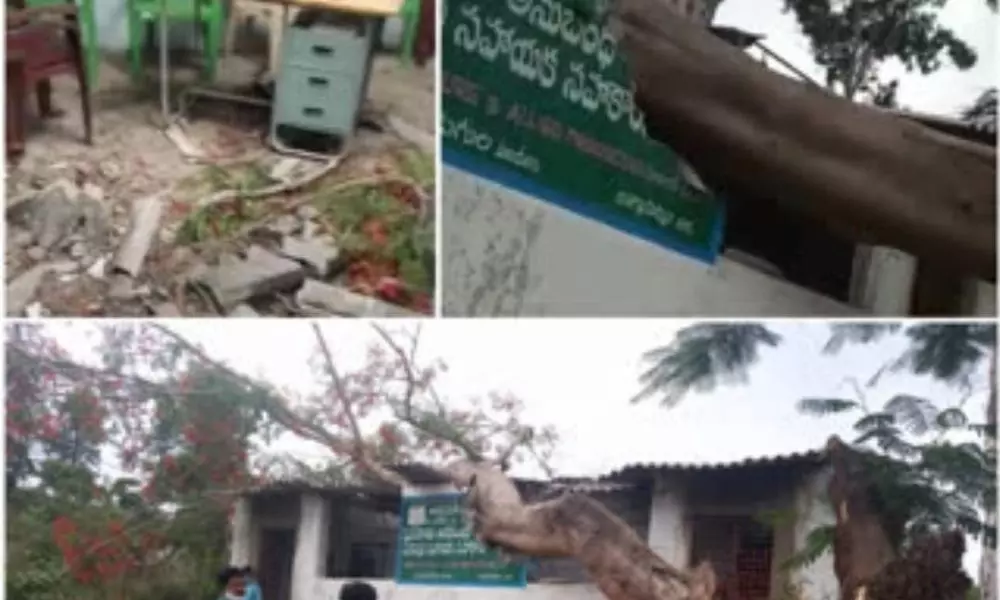 వ్యవసాయ కార్యాలయంపై కూలిన భారీ వృక్షం