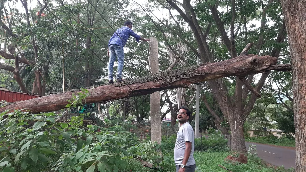 - ఐటిడిఎ ప్రాజెక్టు అధికారి నివాసం వద్ద విద్యుత్ స్తంభాలపైన పడిన చెట్టు.