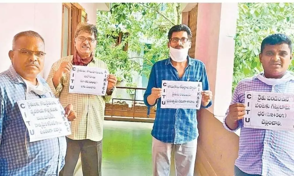 విశాఖపట్నం: రైతు, కౌలు రైతులను ఆదుకోవడంలో కేంద్ర, రాష్ట్ర ప్రభుత్వాలు విఫలమయ్యాయని ఏపీ రైతు సంఘం జిల్లా అధ్యక్షుడు గండినాయనబాబు ఆరోపించారు. జగదాంబకూడలిలోని సీఐటీయూ కార్యాలయ ఆవరణలో కేంద్ర, రాష్ట్ర ప్రభుత్వాలకు వ్యతిరేకంగా నిరసన తెలిపారు. ఈ సందర్భంగా ఆయన మాట్లాడుతూ... వ్యవసాయ రంగానికి ప్రత్యేక ప్యాకేజీ ప్రకటించాలన్నారు. పంట రుణాల రికవరీని తక్షణమే ఆపాలన్నారు. ఖరీఫ్లో పెట్టుబడులు కోసం కొత్తగా పంట రుణాలు ఇవ్వాలని కోరారు. ఈ కార్యక్రమంలో సుబ్బారావు, శ్రీను, రాజు పాల్గొన్నారు.