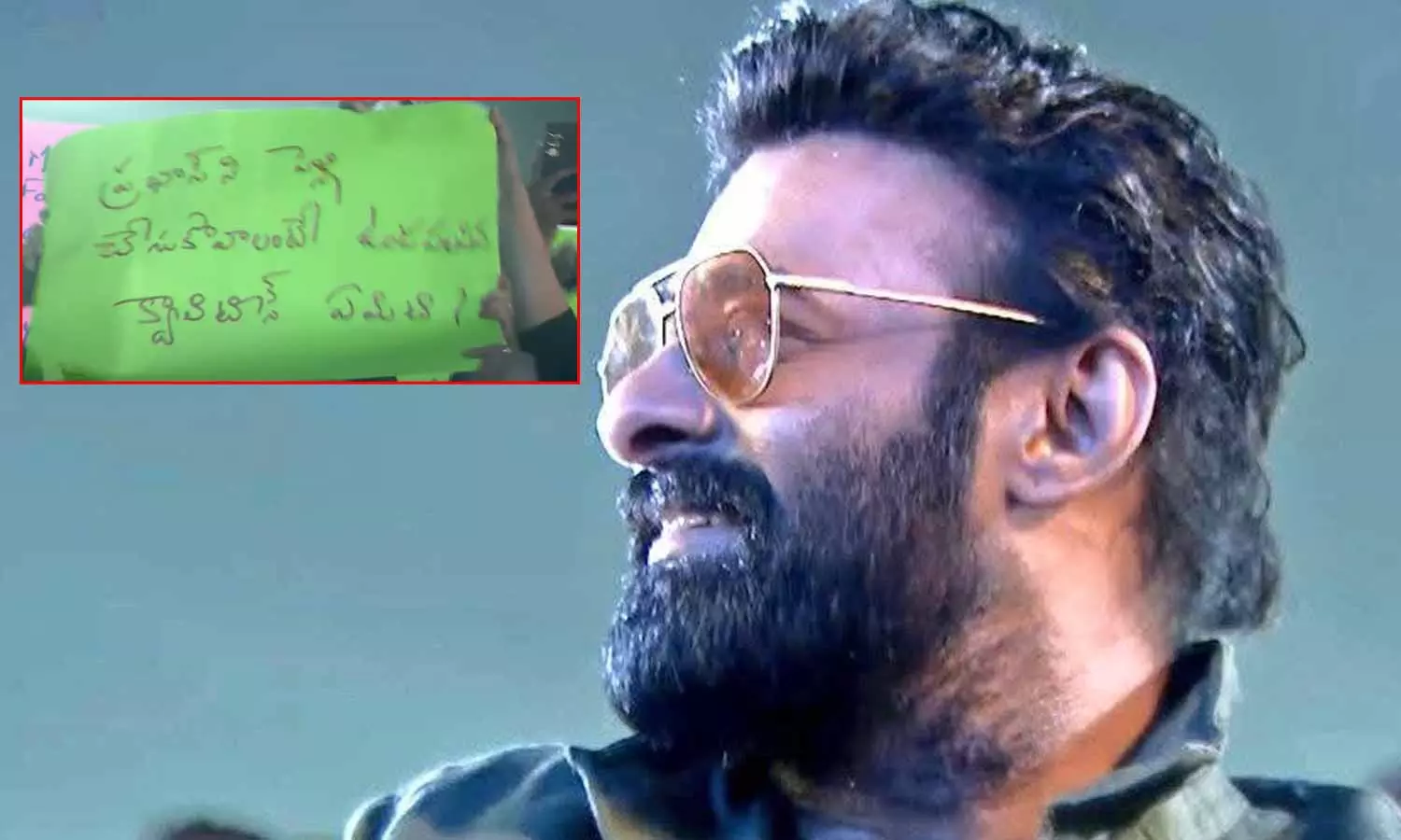 ఈవెంట్ జరుగుతుండగా ఒక లేడీ ఫ్యాన్ "మిమ్మల్ని పెళ్లి చేసుకోవాలంటే మాకు ఉండాల్సిన క్వాలిటీస్ ఏంటి?" అని రాసి ఉన్న ప్లకార్డును ప్రదర్శించారు. దీనిపై యాంకర్ సుమ ప్రభాస్‌ను ప్రశ్నించగా.. ఆయన తనదైన శైలిలో నవ్వుతూ సమాధానమిచ్చారు.