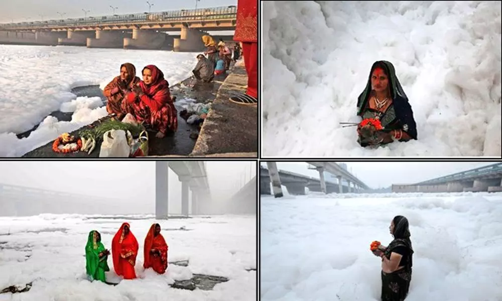 సుందరమైన ప్రదేశం చూట్టు తెల్లటి ముంచుతో కప్పడబడిన స్థలం, సంప్రదాయ వస్ర్రాల ధరించిన స్త్రీలు ఈ ఫోటో చూస్తే ఆ స్థాలానికి ఒక్కసారైనా వెళ్లాలి అనిపిస్తుంది కదూ. అందరూ అనుకున్నట్లు ఆది సుందరమైన ప్రదేశం కాదు, అక్కడ ఉంది ముంచు కాదు. కాలూష్యం కోరల్లో చిక్కుకున్న యుమునా నది ప్రాంతం. ఛత్ పూజలు అనగానే గుర్తుకు వచ్చేది ఉత్తర భారతం, అక్కడి వారు ఎక్కువగా ఈ పూజా సంప్రదాయాలను జరుపుకుంటారు. వారు తెల్లవారే వరకు పూజలు చేసి, సూర్యోదం కాగానే సూర్యభగవానుడికి నైవేద్యం సమర్పిస్తారు.