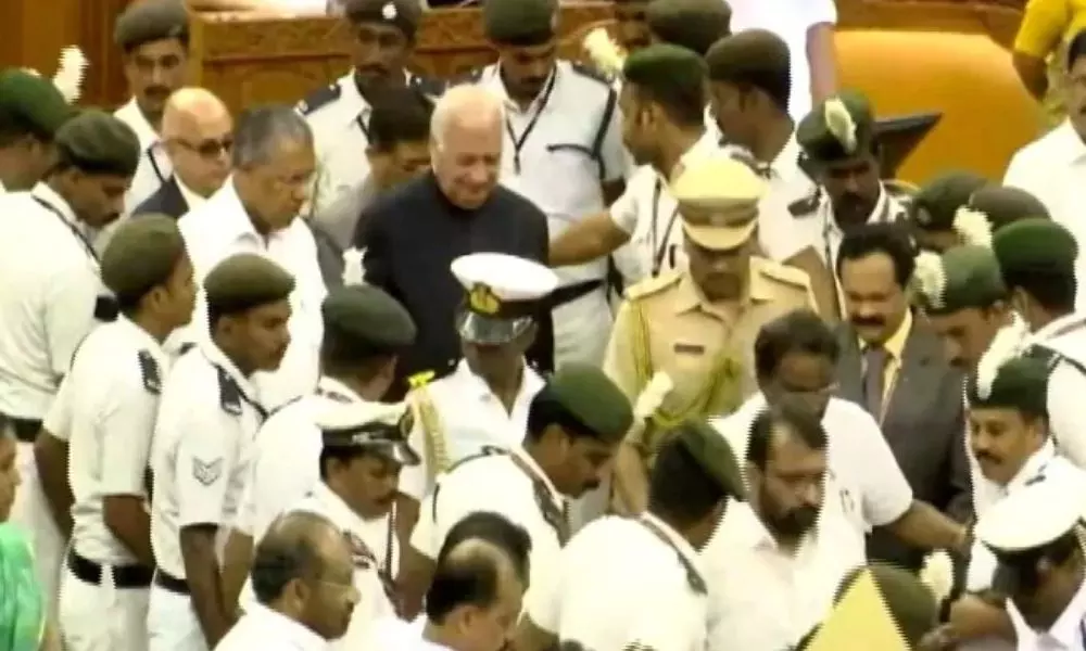 కేరళ అసెంబ్లీలో గవర్నర్ పై ప్రతిపక్షాలు తీవ్ర నిరసన వ్యక్తం చేశాయి. బడ్జెట్ సమావేశంలో ప్రసంగించడానికి గవర్నర్ ఆరిఫ్ మొహమ్మద్ ఖాన్ బుధవారం ఉదయం సభకు వచ్చిన వెంటనే ప్రతిపక్ష ఎమ్మెల్యేలు "గో బ్యాక్ గవర్నర్" అని నినాదాలు చేస్తూ, సిఎఎ వ్యతిరేక పోస్టర్లను ప్రదర్శించడంతో కేరళ అసెంబ్లీ బుధవారం హై వోల్టేజ్ డ్రామా నెలకొన్నట్టయింది. యునైటెడ్ డెమోక్రటిక్ ఫ్రంట్ (యుడిఎఫ్ ) ఎమ్మెల్యేలు గవర్నర్ మార్గాన్ని చుట్టు ముట్టారు. ప్లకార్డులు పట్టుకొని సభలోకి రాకుండా నినాదాలు చేస్తూ వ్యతిరేకించారు. దాంతో హౌస్ మార్షల్స్ , గవర్నర్ ఎస్కార్ట్ పోడియం వరకు రావలసి వచ్చింది.