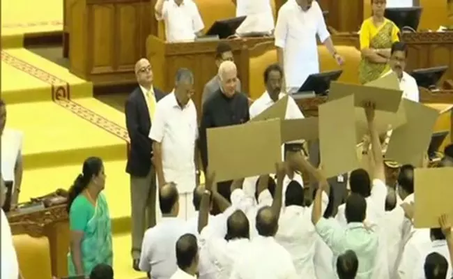 కేరళ అసెంబ్లీలో గవర్నర్ పై ప్రతిపక్షాలు తీవ్ర నిరసన వ్యక్తం చేశాయి.