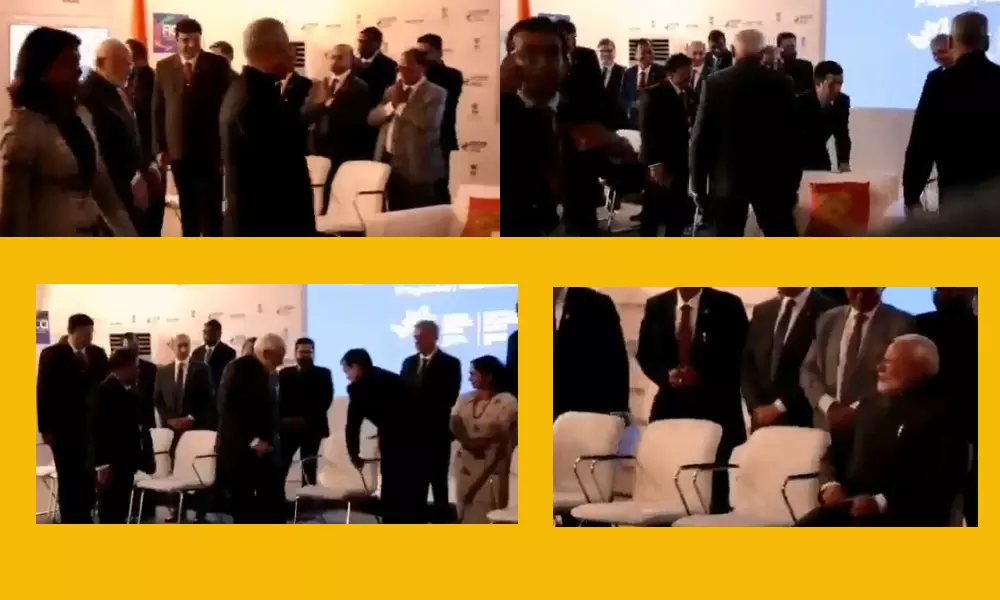 రష్యాలోని వ్లాదివోస్తోక్ లో తూర్పు ఆర్థిక వేదిక 5వ సదస్సు జరుగుతోంది. అందులో భారత ప్రధాని మోడీ పాల్గొన్నారు. ఈ సమావేశాల తరువాత ఫోటోలు దిగే కార్యక్రమం ఏర్పాటు చేశారు అక్కడి అధికారులు. దీనికోసం మోడీకి ప్రత్యేకంగా కుర్చీని ఏర్పాటు చేశారు. అయితే, మోడీ ఆ కుర్చీ పై కూచోవడానికి వ్యతిరేకించారు. తనకూ అందరితో పాటూ మామూలు కుర్చీ వేయాలని అక్కడి అధికారులను కోరారు. దీంతో ఆ అధికారులు ఆయనకు అందరితో పాటు కుర్చీ వేశారు. తరువాత ఫోటో కార్యక్రమంలో మోడీ పాల్గొన్నారు.