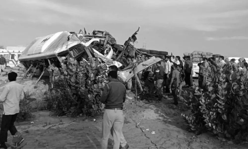 రాజస్థాన్ 11వ నెంబర్ జాతీయ రహదారిపై బికనీర్ నుంచి ప్రయాణికులతో వెళ్తున్న బస్సు ఎదురుగా వస్తున్న ట్రక్కు బలంగా ఢీకొట్టిందని దీంతో పెను ప్రమాదం జరిగిందని స్థానికులు చెబుతున్నారు. స్థానికులు పోలీసులకు సమాచారం ఇచ్చారు సంఘటన స్థలానికి చేరుకున్న పోలీసులు సహాయక చర్యలు చేపట్టారు.