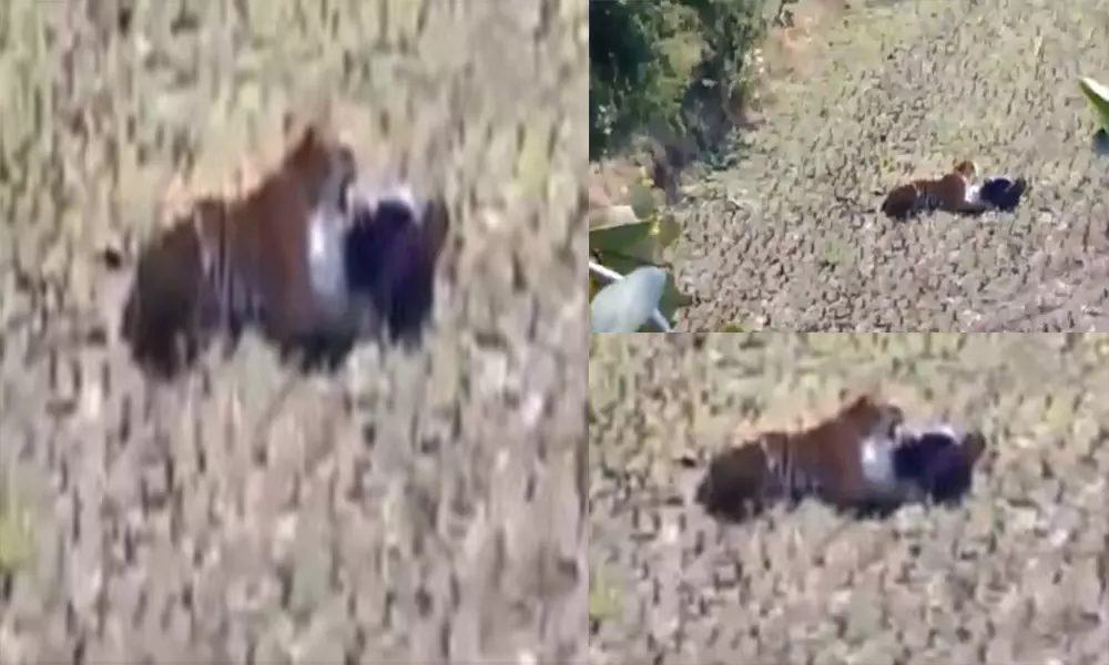 పులి నోటికి చిక్కి చాకచక్యంతో ప్రాణాలు దక్కించుకున్నాడు ఓ వ్యక్తి. ఇప్పుడు ఈ వీడియో నెటింట్లో వైరల్ అవుతుంది.