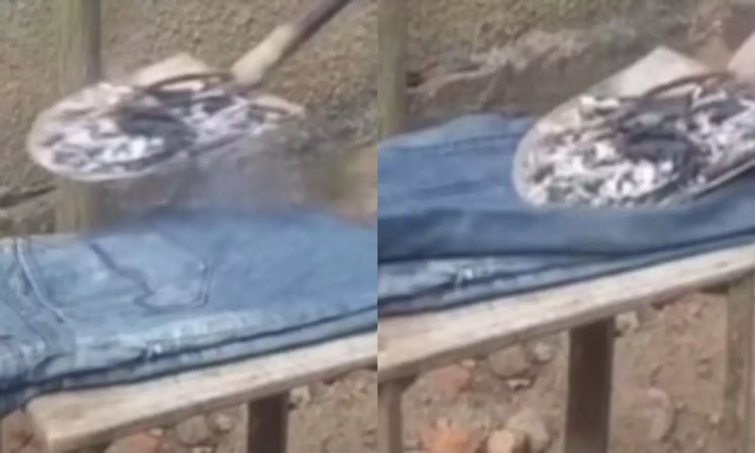 ఈ వీడియోలో వ్యక్తి తలకు హ్యాట్ పెట్టుకున్నాడు. తన జీన్స్ ఇస్త్రీ లేదనుకుంటా.. ఏకంగా పార ఉంది కదా ఇంకేంటి అని ఇనుప పార తీసుకొని అందులో నిప్పులు వేశాడు. అది మండుతూ ఉంది కూడా. దీంతో ఎంచక్కా తన జీన్స్ ను అటు ఇటు తిప్పుతూ ఇస్త్రీ చేసేసుకున్నాడు.