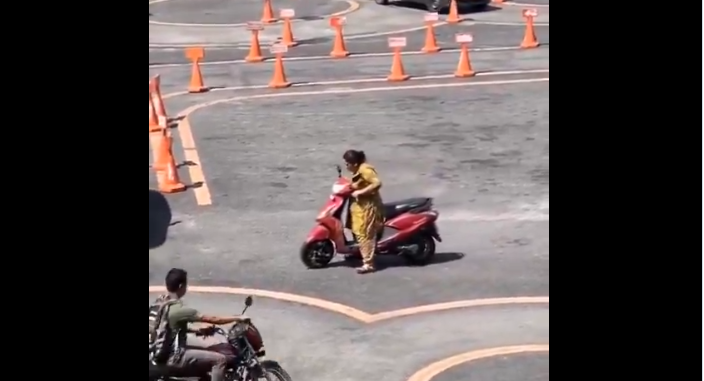 ఇది భారతదేశంలోని ఓ రాష్ట్ర రవాణా కార్యాలయంలో జరిగిన ఘటనగా చెబుతున్నారు. ఏ రాష్ట్రమో ఖచ్చితంగా తెలియకపోయినా.. వీడియో చూసిన తర్వాత అది తెలుగు రాష్ట్రాల్లోని డ్రైవింగ్ టెస్ట్ సెంటర్ కావచ్చని భావిస్తున్నారు. వీడియోలో కనిపించినట్లుగా, ఓ యువతి స్కూటీపై మెల్లగా ముందుకు వెళుతోంది. కానీ స్కూటీపై కాల్లు పెట్టకుండా, నేలపై ఉంచి నడిపిస్తోంది!