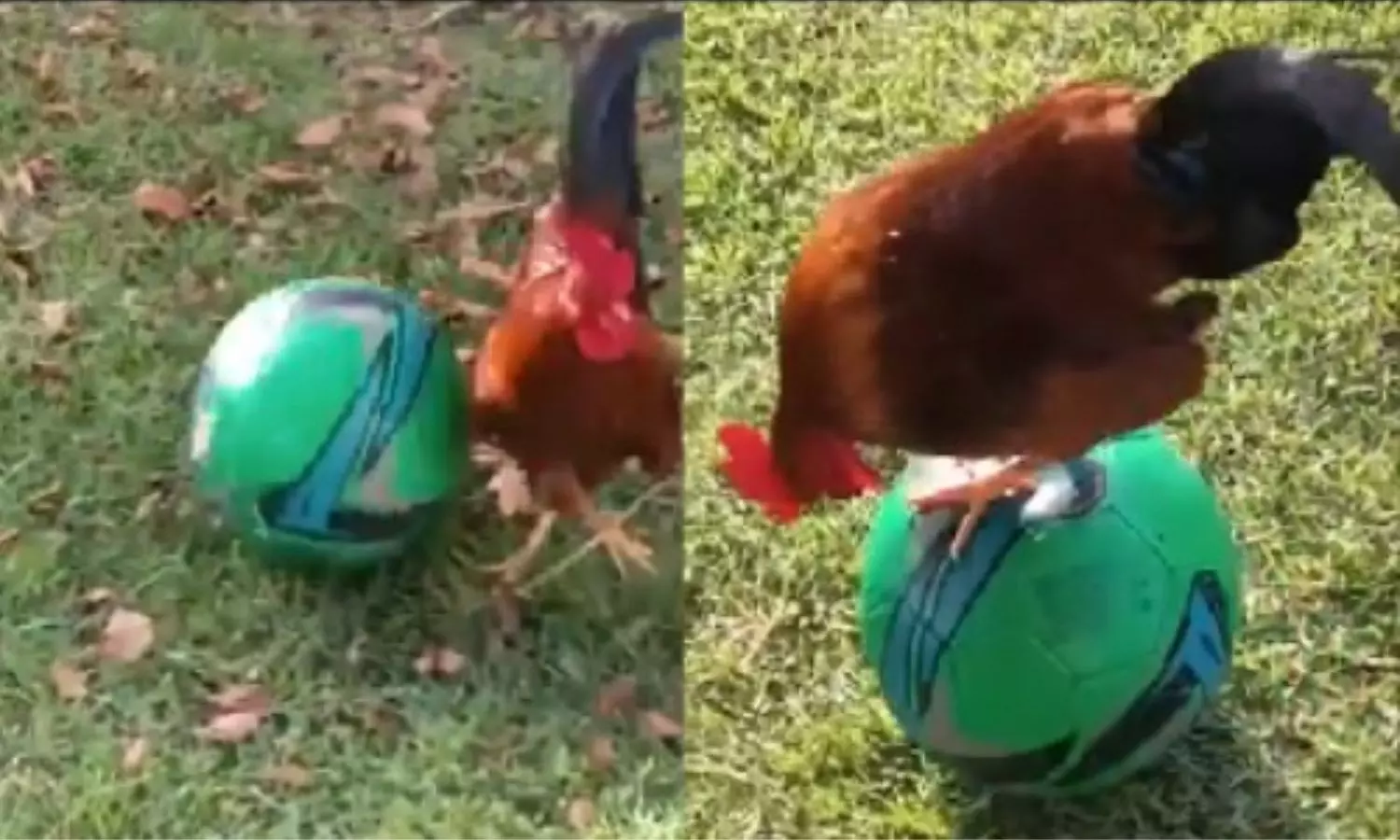 Rooster Plays Football: సోషల్ మీడియా పుణ్యమా అని ప్రపంచంలో ఎక్కడ ఏ ఆసక్తికర సంఘటన జరిగినా క్షణాల్లోనే మన చేతుల్లోకి వచ్చేస్తోంది. ఇందులో ముఖ్యంగా జంతువులు, పక్షులు చేసే విచిత్రమైన పనులు, అల్లరి చేష్టలు ప్రత్యేక ఆకర్షణగా మారుతున్నాయి. కాస్త వెరైటీగా ఉంటే చాలు సోషల్ మీడియాలో వీడియోలు తెగ ట్రెండ్ అవుతున్నాయి. తాజాగా ఇలాంటి ఓ వీడియో నెటిజన్లను ఆకట్టుకుంటోంది. ఇంతకీ ఏంటా వీడియో.? అందులో ఏముందో ఇప్పుడు తెలుసుకుందాం.