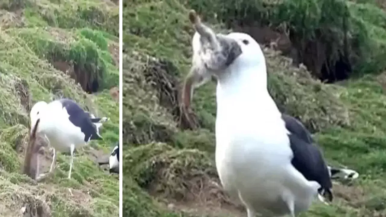 కొన్ని సెకన్ల ఈ వీడియోలో ఒక సీగల్ కుందేలును దాని బొరియ దగ్గర నుంచి బయటకు లాగి, క్రమంగా సజీవంగానే మింగేయడం స్పష్టంగా కనిపిస్తోంది. మొదట తలను పట్టుకుని, తరువాత నోటి లోపలికి నెమ్మదిగా తోసుకుంటూ మొత్తం మింగేసింది. ఈ దృశ్యం చూసిన నెటిజన్లు తమ కళ్లను నమ్మలేకపోతున్నారు.
