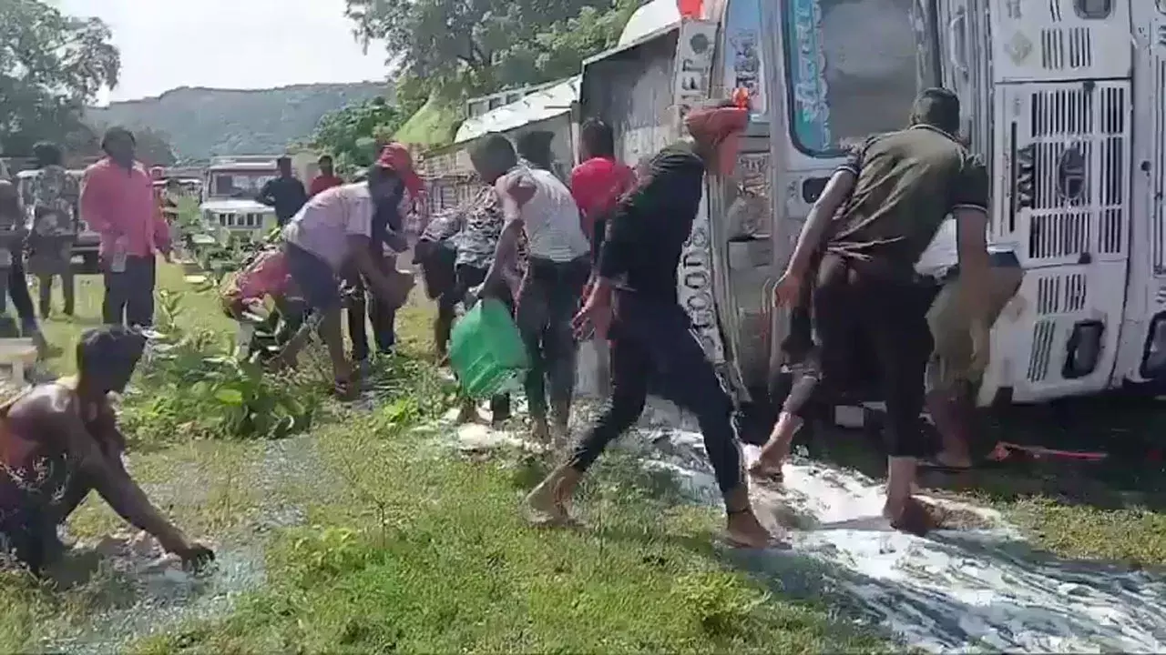ఫ్రీలో దొరికితే ఫినాయిల్ కూడా వదిలిపెట్టని మనవాళ్లు.. మద్యం లోడ్ లారీ బోల్తా పడితే గాయపడిన వారిని పట్టించుకోకుండా మద్యం సీసాలు ఎత్తుకుపోతారు. ఇప్పుడు అదే సీన్ డీజిల్తో రిపీట్ అయింది.