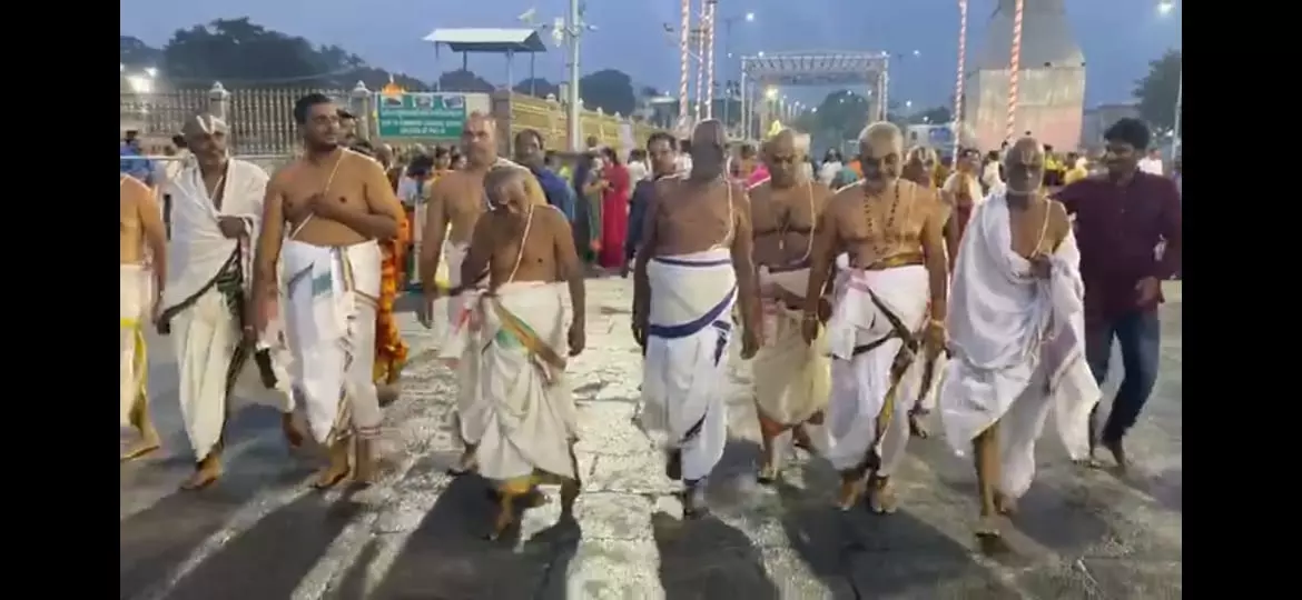 18 నెలల తరువాత టీటీడీ ఆగమ సలహాదారుడి హోదాలో మహాద్వారం నుంచి ఆలయ ప్రవేశం చేసిన రమణదీక్షితులు.