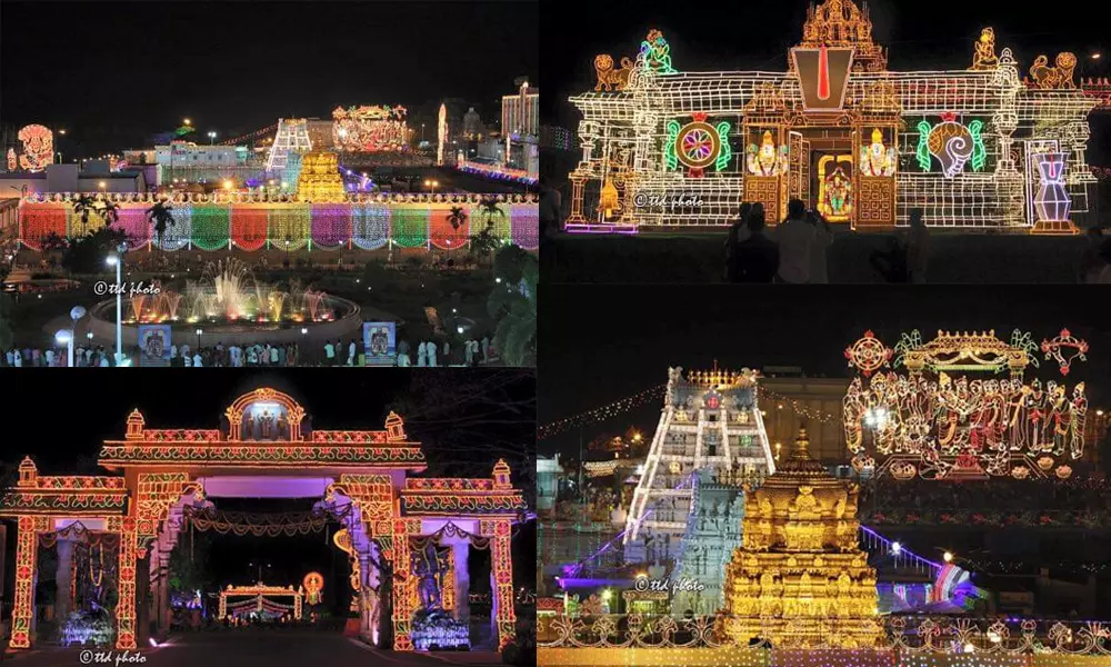 శ్రీవారి బ్రహ్మోత్సవాలకు వేగంగా సిద్ధమవుతోంది తిరుమల. ప్రస్తుతం తిరుమల ఎటు చూసినా వెలుగులతో మెరిసిపోతోంది. విద్యుత్ దీపాల చూడచక్కని అమరిక భక్తులను అలరిస్తోంది. విద్యుత్ దీపాలతొ తిరుమలలో అడుగడుగూ కొత్త శోభను సంతరించుకుంది.