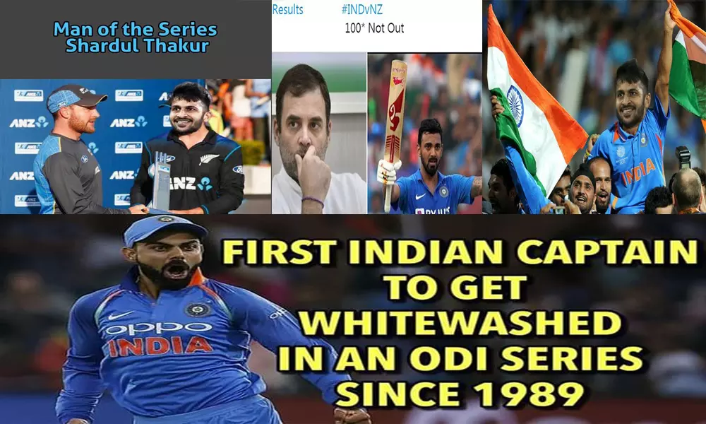 టీమిండియా ఆటగాళ్లపై నెటిజన్లు జోక్లు పేలుస్తున్నారు. రోహిత్ శర్మ, ధోనీ లేకపోతే వన్డేల్లో టీమిండియాకు ఆటతీరు దారుణంగా ఉంటుందని విమర్శలు చేస్తున్నారు.