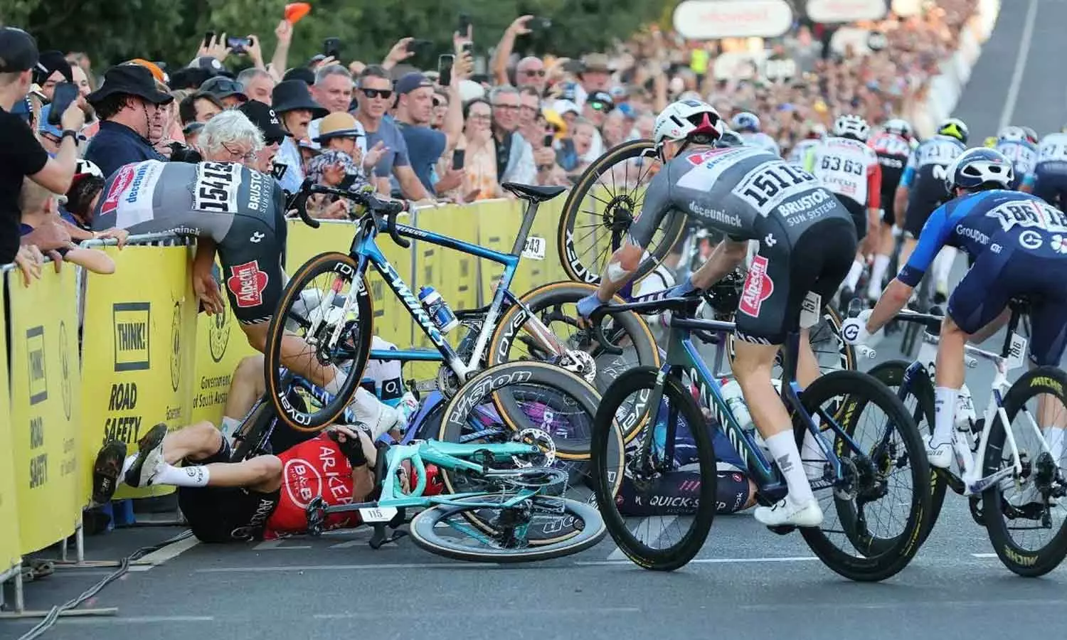 ఆస్ట్రేలియా సైక్లింగ్ రేసు 'టూర్ డౌన్ అండర్ మెన్స్ క్లాసిక్' వీడియో సోషల్ మీడియాలో వైరల్ అవుతోంది. అందులో చాలా మంది రైడర్లు రేసింగ్ చేస్తూ కనిపిస్తారు. రోడ్డు పక్కన ప్రేక్షకుల గుంపు కూడా కనిపించింది. రేసును చూడటానికి పెద్ద సంఖ్యలో ప్రేక్షకులు వచ్చారు. ఆ తర్వాత ఒక మహిళా అభిమాని ప్రమాదానికి గురైంది. ప్రేక్షకులు పక్కగా నిలబడి రేసును ఆస్వాదిస్తుండగా, అకస్మాత్తుగా ఒక రైడర్ బ్యాలెన్స్ తప్పి రోడ్డుపై పడిపోయాడు. దీని కారణంగా కొంతమంది రైడర్లు ఒకరినొకరు ఢీకొనగా మరికొందరు బారికేడ్లను ఢీకొట్టారు.