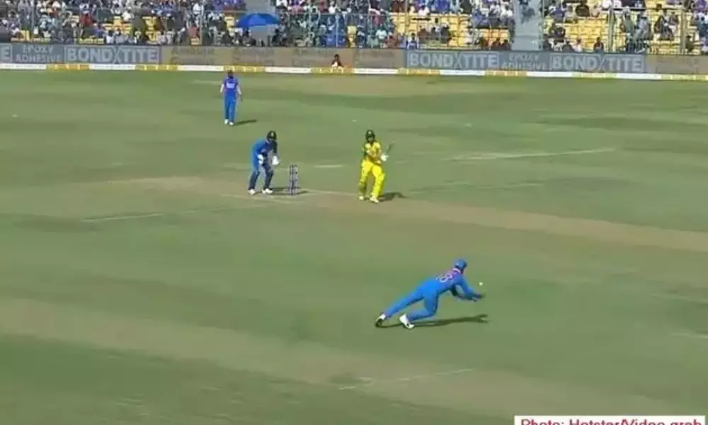 బెంగళూరు వేదికగా ఆస్ట్రేలియాతో జరుగుతున్న నిర్ణయాత్మక వన్డేలో టీమిండియా కెప్టెన్ విరాట్ కోహ్లీ కళ్లు చెదిరే క్యాచ్తో ఆశ్చర్యపరిచాడు. జడేజా వేసిన 32వ ఓవర్లో ఆసీస్ రెండు వికెట్లు కోల్పోయింది. జడేజా వేసిన మూడో బంతికి మార్నస్ లుబుషేన్ (54 పరుగులు, 64 బంతుల్లో, 5ఫోర్లు ) కవర్స్ దిశగా బౌండరీకి తరలించే ప్రయత్నం చేశాడు కెప్టెన్ కోహ్లీ డైవ్ చేసి కోహ్లీ క్యాచ్ అందుకున్నాడు. కోహ్లీ క్యాచ్ చూసి లబుషేన్ ఆశ్చర్యపోయాడు. కొన్ని క్షణాల పాటు కోహ్లీ వైపు చూసి లబుషేన్ నిరాశగా పెవిలియన్ దారి పట్టాడు. లబుషేన్కి భారత్ పై తొలి వన్డే కెరీర్ ఆరంభించాడు. రాజ్కోట్ వన్డేలోనూ 46 వద్ద జడేజా బౌలింగ్ లో ఔట్ అయ్యాడు. బెంగళూరులో జరిగిన మూడో వన్డేలో కూడా జడేజా వికెట్ చేజార్చుకోవడం గమనార్హం.