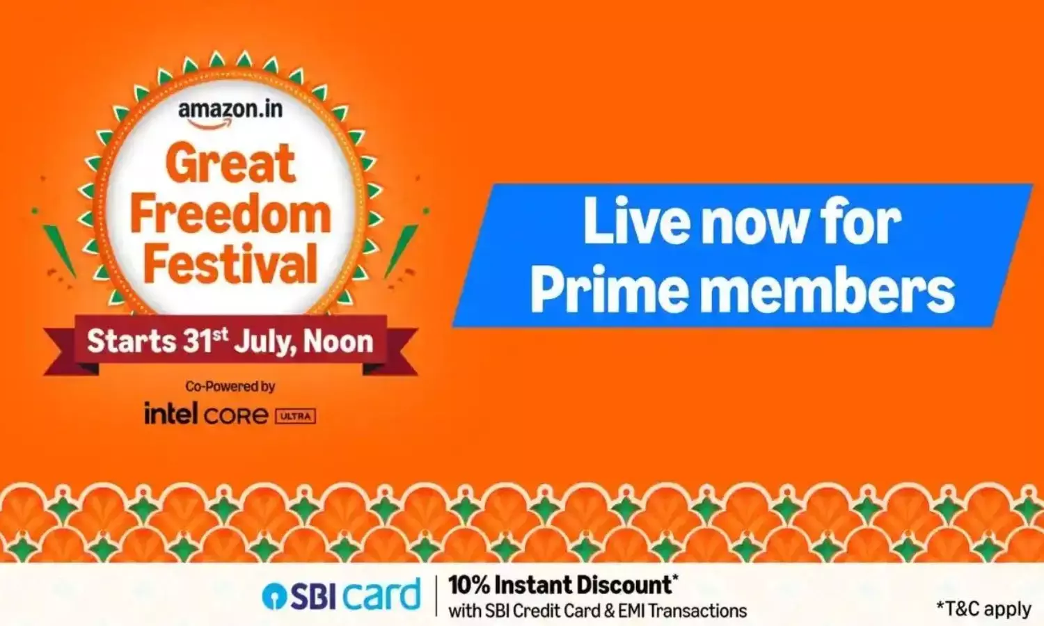 ప్రస్తుతం, అమెజాన్ గ్రేట్ ఫ్రీడమ్ ఫెస్టివల్ సేల్ 2025 అన్ని ప్రైమ్ విధేయులకు షెడ్యూల్ కంటే 12 గంటల ముందుగానే ప్రత్యక్ష ప్రసారం అయింది, కాబట్టి మీరు ఉత్తమ డీల్స్లో మొదటి ఎంపికను పొందుతారు. ఈ ముందస్తు యాక్సెస్ ప్రైమ్ సభ్యులకు సాధారణ కస్టమర్ల స్టాక్ అయిపోకముందే ప్రసిద్ధ ఉత్పత్తులను కొనుగోలు చేయడానికి అనుమతిస్తుంది. భారీ ధరల తగ్గింపులతో పాటు, మీరు తక్షణ బ్యాంక్ డిస్కౌంట్లు, నో-కాస్ట్ EMI ఎంపికలు, విస్తృత శ్రేణి ఉత్పత్తులపై ఆకర్షణీయమైన ఎక్స్ఛేంజ్ ఆఫర్ల ద్వారా అదనపు పొదుపులను పొందవచ్చు. ఈ తొలి అవకాశాన్ని చేజార్చుకోకండి, అన్నీ అద్భుతమైన పొదుపులతో.