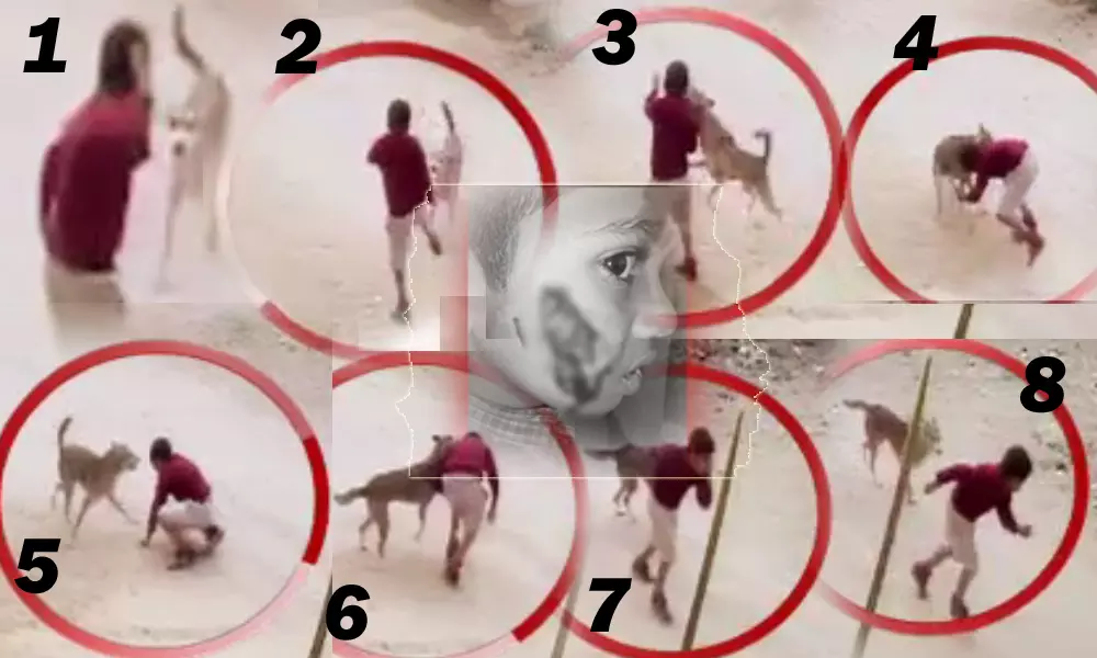 పాపం పసివాడు.. వీధి కుక్కకు చిక్కాడు!