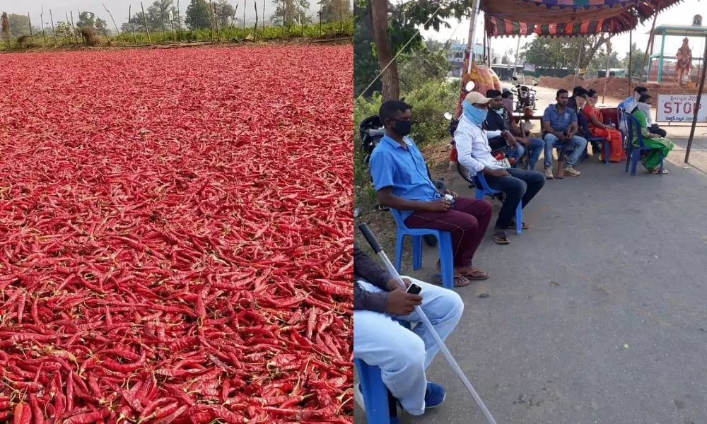 వెంకటాపురం (వాజేడు): మండల వ్యాప్తంగా మొక్కజొన్న, మిర్చి పంటలను పండించిన రైతులు కరోనా వైరస్ మహమ్మారి వలన తాము పండించిన పంటలను అమ్ముకోలేక పోతున్నామని ఆందోళన చెందుతున్నారు. ఈ సందర్భంగా వారు మాట్లాడుతూ... ప్రభుత్వం లాక్ డౌన్ నిర్వహించడం ద్వారా మార్కెట్లోకి పంటలను తీసుకెళ్ళి అమ్ముకునే పరిస్థితి లేదని ఆవేదన వ్యక్తం చేశారు.