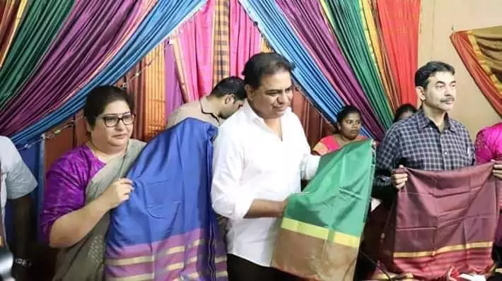 ఈ నెల 23వ తేదీ నుంచి బతుకమ్మ చీరల పంపిణీ చేయనున్నట్లు మంత్రి కేటీఆర్ తెలిపారు. హైదరాబాద్ సీడీఎంఏ కార్యాలయంలో బతుకమ్మ చీర ప్రదర్శనను ఆయన సందర్శించారు. అనంతరం నిర్వహించిన మీడియా మాట్లాడుతూ... 24 వేల పైచిలుకు మగ్గాలు పనిచేసి 100 డిజైన్లతో కోటి చీరలు జిల్లాలకు సరఫరా చేసి 23వ తేదీ నుంచి పంపిణీకి అధికారులు సిద్ధం చేశారని తెలిపారు. బతుకమ్మ చీరలకు రాష్ట్ర ప్రభుత్వం రూ.313 కోట్లు ఖర్చు చేసిందని..నేతన్నలకు ఉపాధి కల్పిస్తున్నామని పేర్కొన్నారు. 18 సంవత్సరాలు పైబడి తెల్లరేషన్ కార్డు కలిగి ఉన్న ఆడ బిడ్డలందరికీ చీరలు పంపిణీ చేస్తున్నట్లు కేటీఆర్ చెప్పారు.
