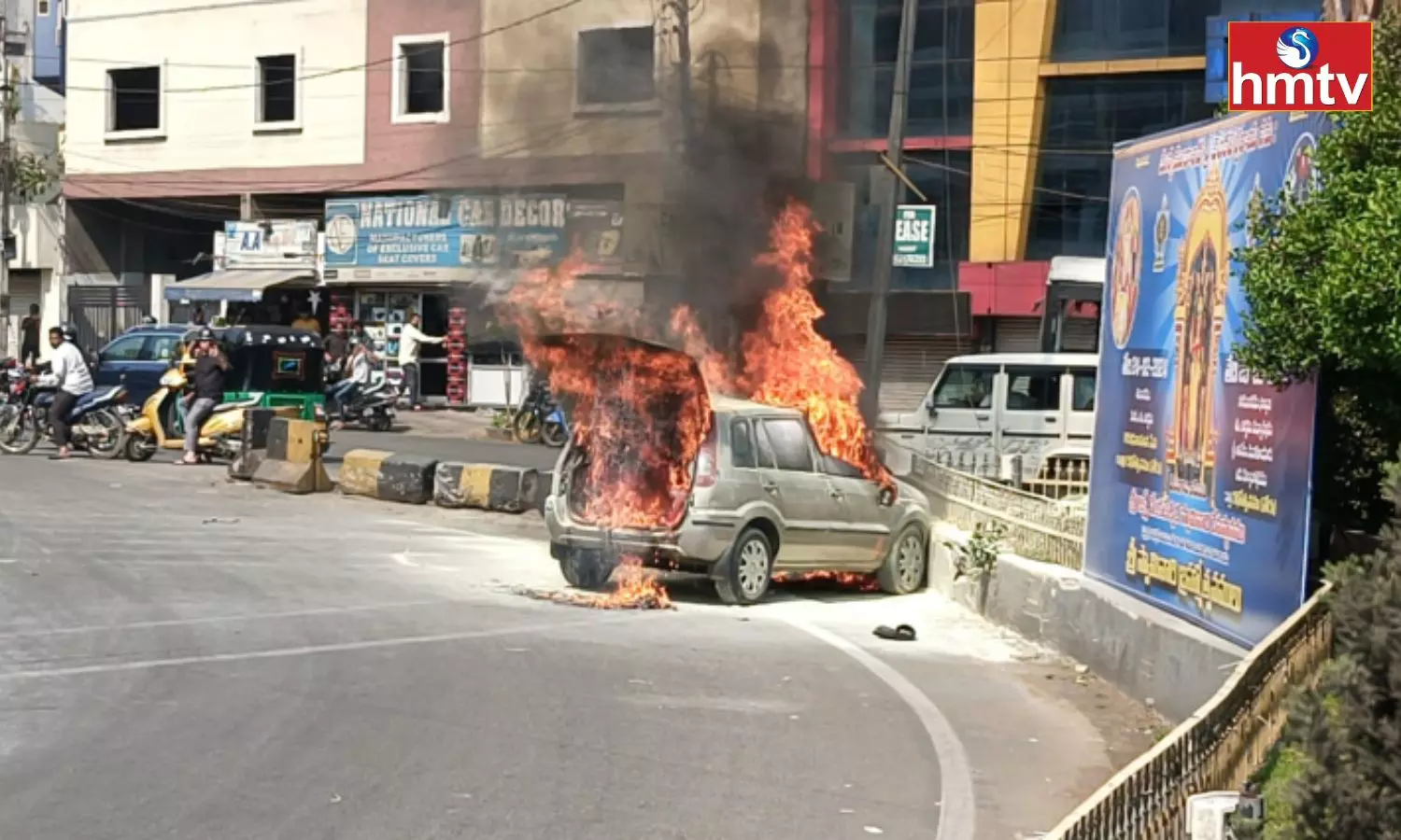 HYD: పెట్రోల్ బంక్ సమీపంలో కారులో చెలరేగిన మంటలు
